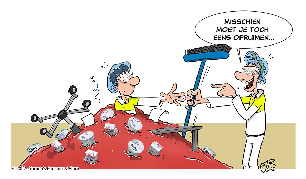 Voor de Safety & Quality Day bij Alpro zijn een reeks posters gemaakt waar wij de illustraties voor mochten verzorgen. Van de zogenaamde brickjes en potten hebben we 3D modellen gemaakt zodat we ze in bijna iedere tekening terug konden laten komen. Soms in hele grote hoeveelheden.